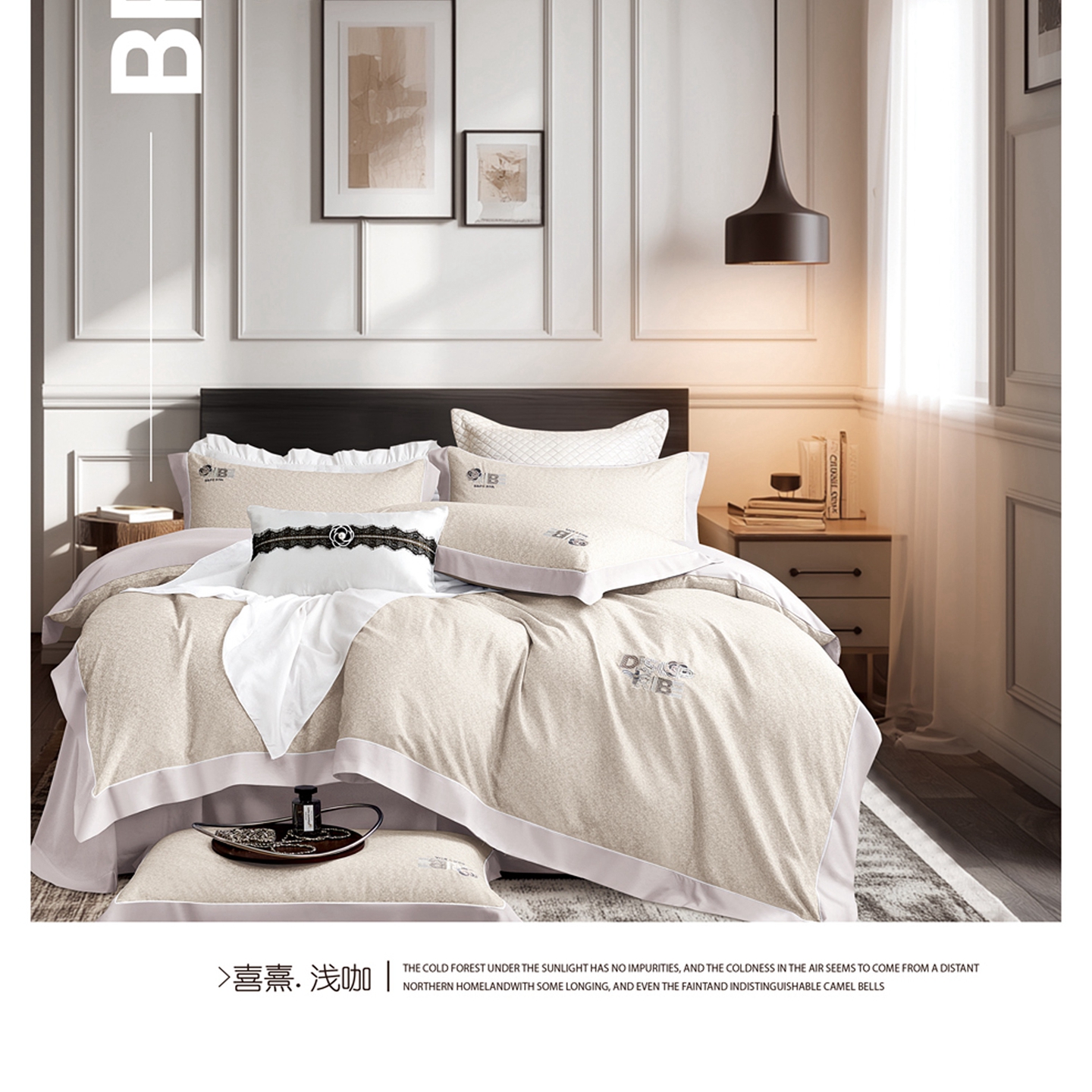 丽阳家纺 2025新款奢绸臻棉长绒棉莱赛尔磨毛绣花四件套-喜熹 喜熹-蔷薇紫