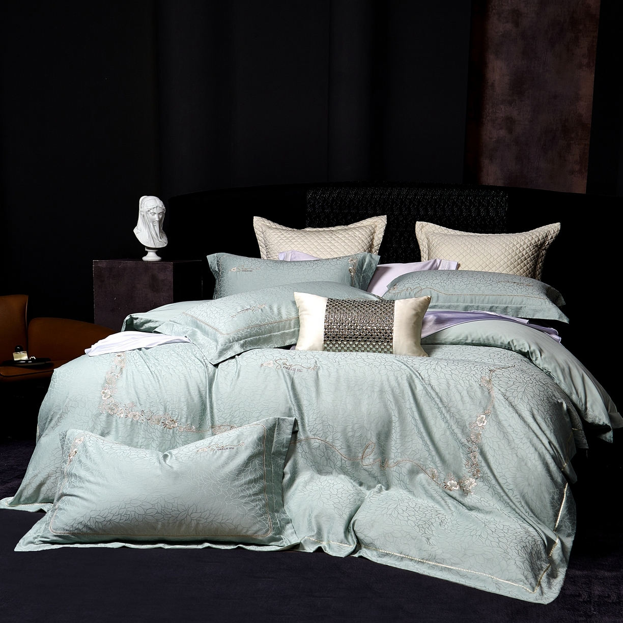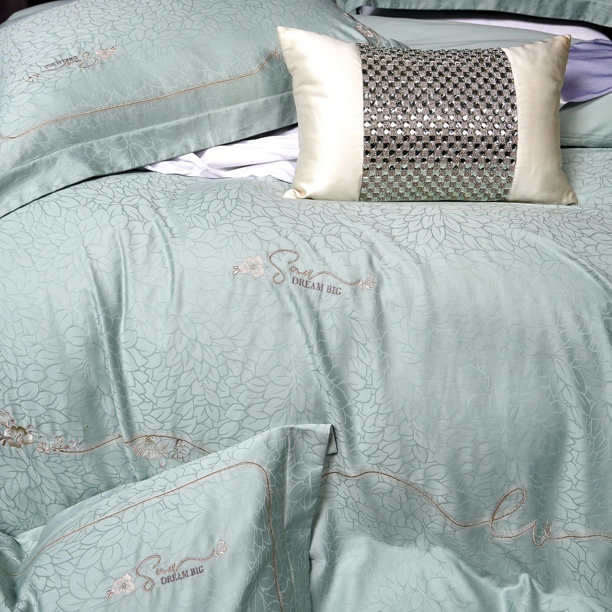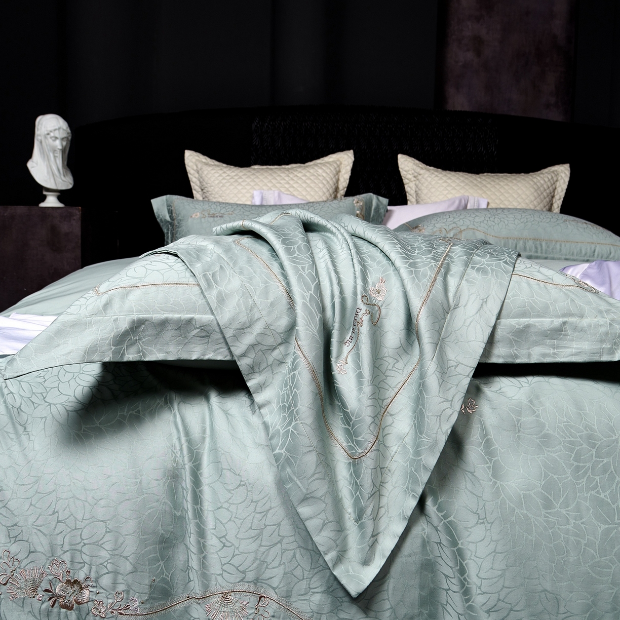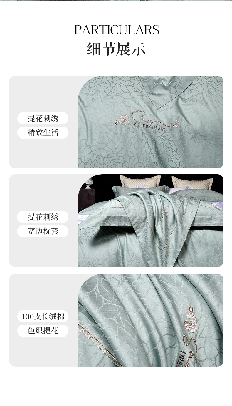 丽阳家纺 2025新款100支单股长绒棉纯棉色织提花四件套 柏林花海-清水绿