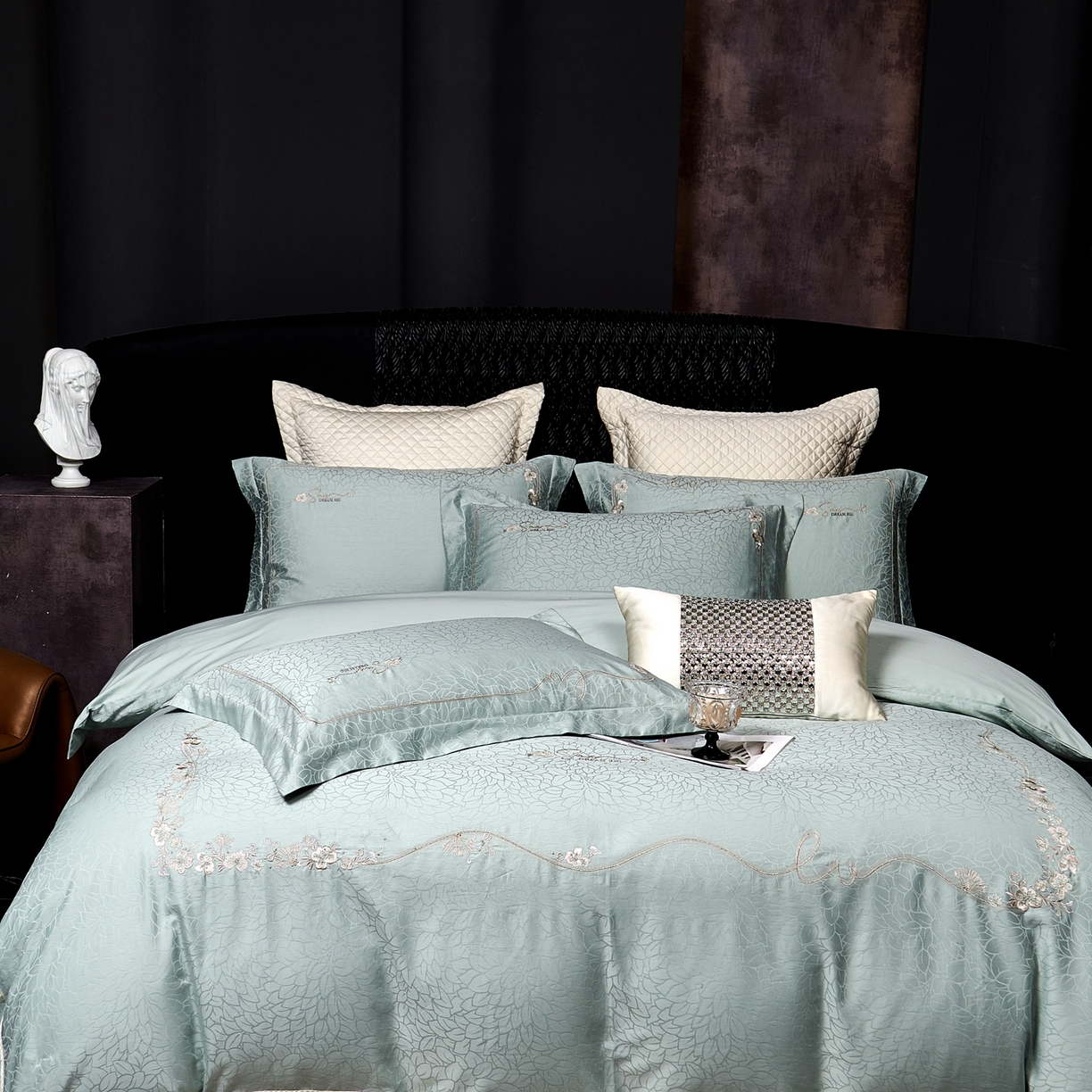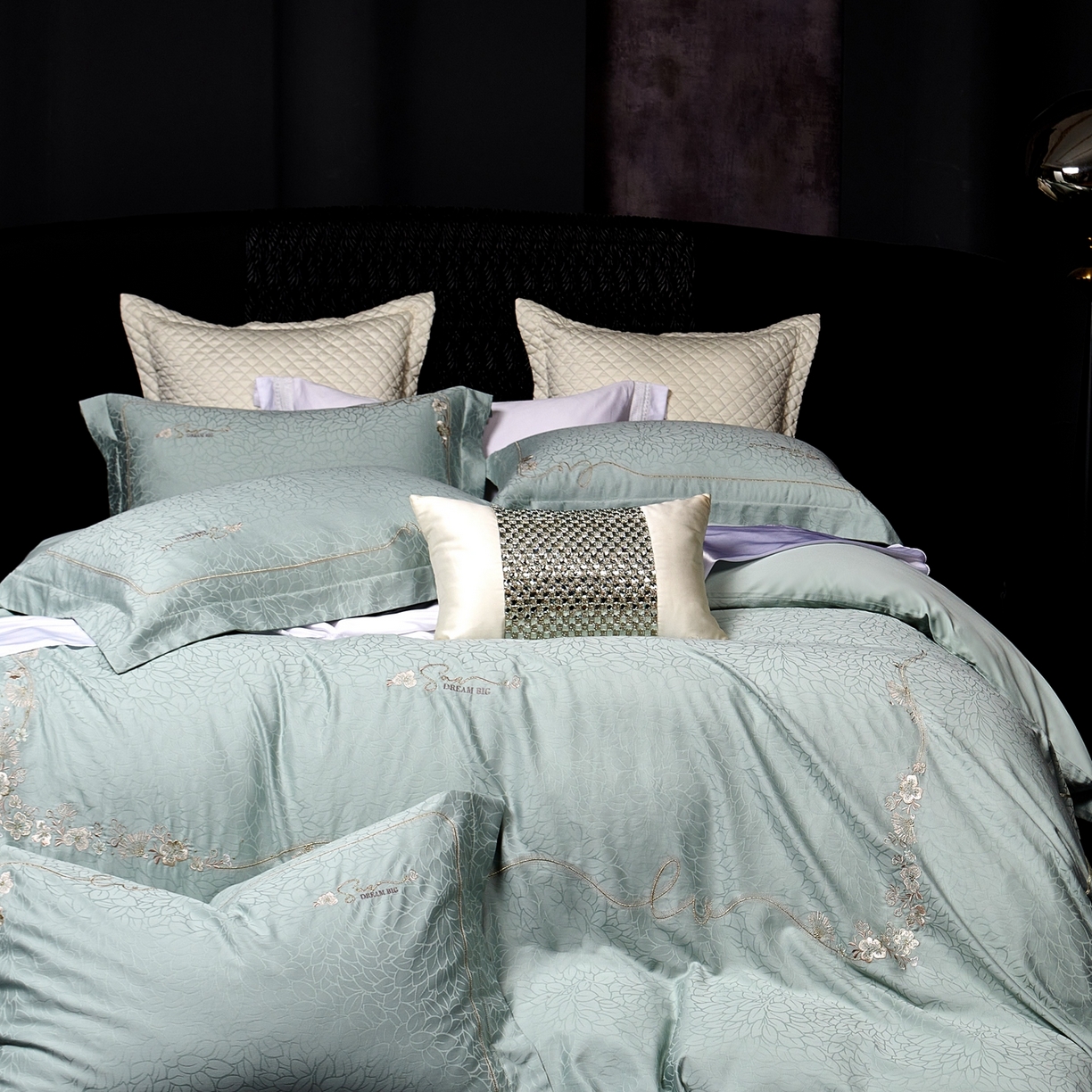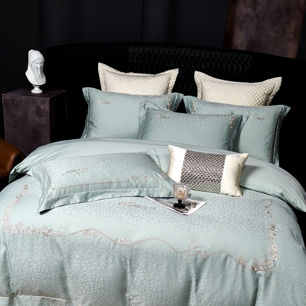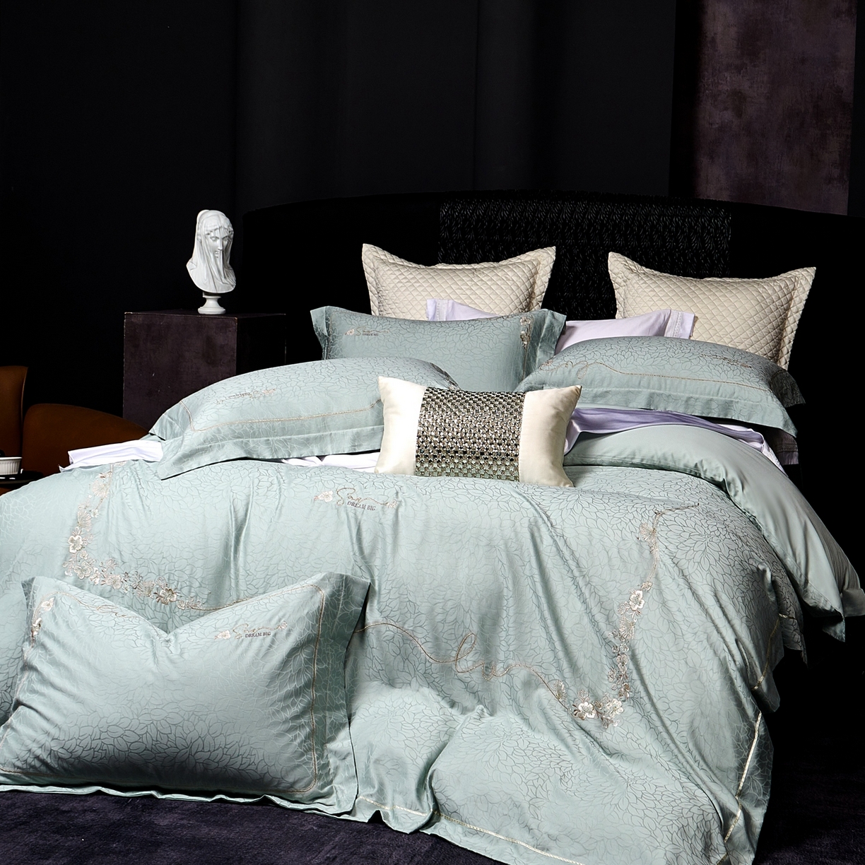 丽阳家纺 2025新款100支单股长绒棉纯棉色织提花四件套 柏林花海-清水绿