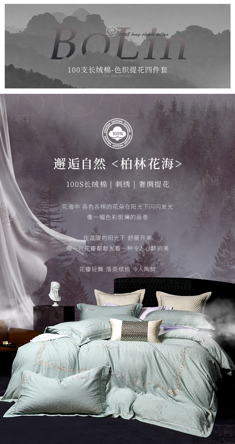 2025新款100支单股长绒棉纯棉色织提花四件套