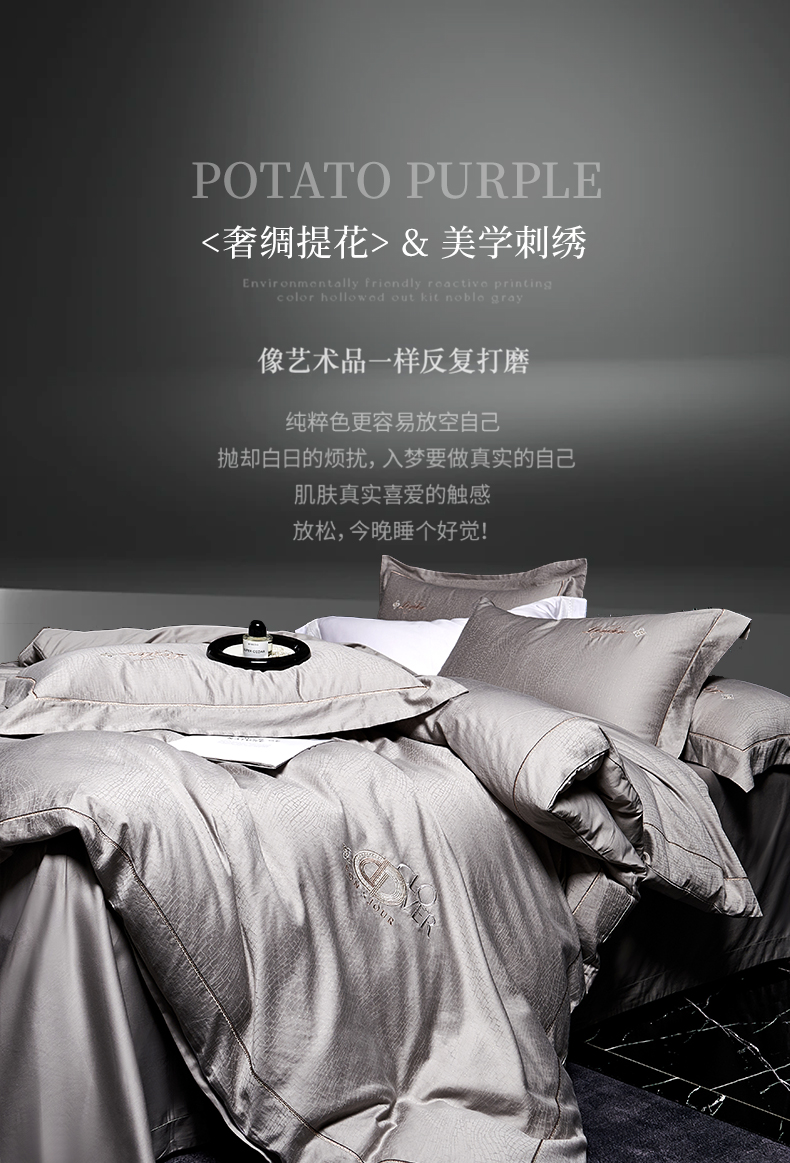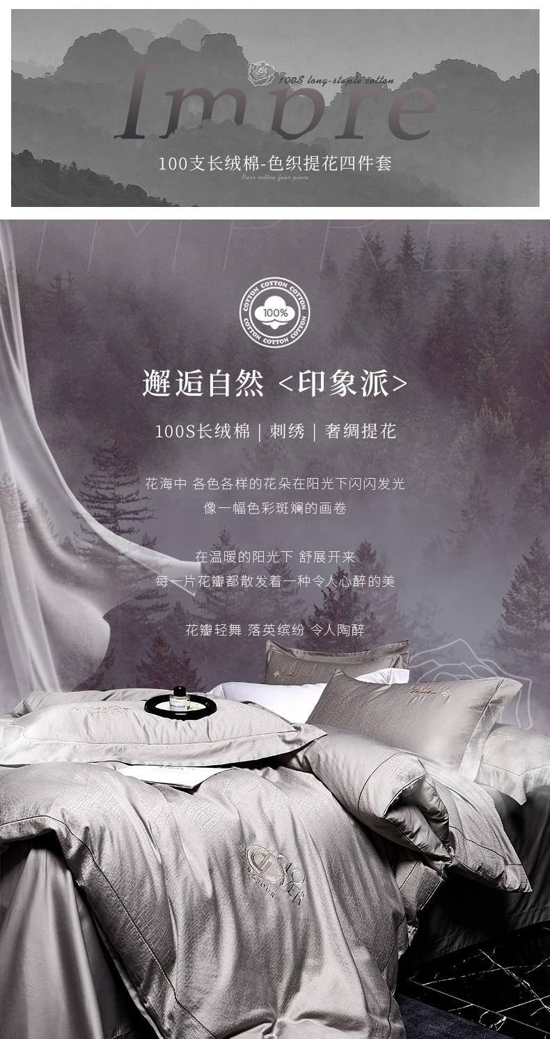 丽阳家纺 2025新款100支单股长绒棉纯棉色织提花四件套 印象派-千黛紫